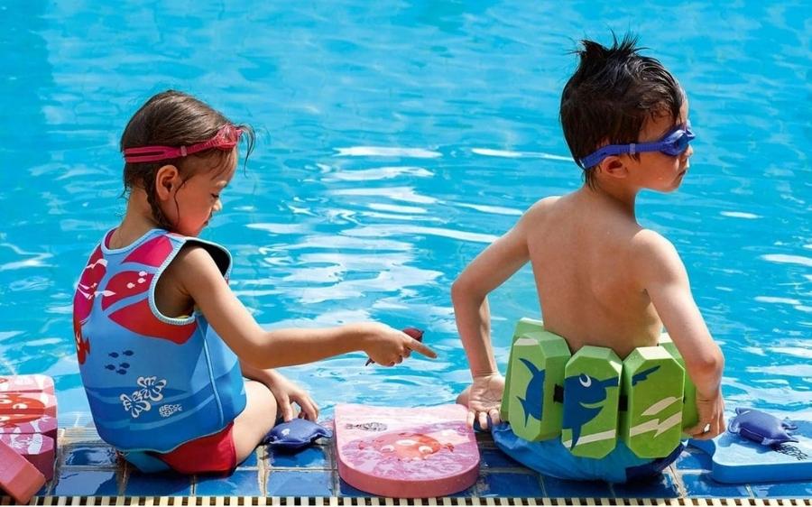 Vi har et udvalg af blandt andet baderinge, badevinger, hajfinner til børn og svømmeveste. Udstyret holder dit barn sikkert over vande samt giver fuld bevægelsesfrihed. Det giver dit barn muligheden for at mærke og forstå sine egne bevægelser i vand.