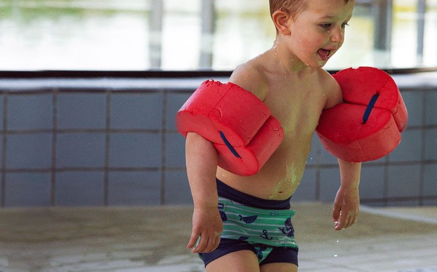 We kunnen in het bijzonder Happy Nappy zwembroeken van Splash About aanbevelen als jouw kind nog steeds luiers draagt. Ze zijn ongelooflijk strak, terwijl ze nog steeds zeer comfortabel zijn. De luierzwembroek is gemaakt van neopreen, een licht en flexibel materiaal, en ze passen goed rond de taille en dijen zonder dat ze afknellen. Mocht er een ongelukje zijn, houdt Happy Nappy het binnen, waardoor dit type badkleding bijzonder geschikt is voor het zwembad.